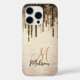 Elegante goldbraune Tropfen Glitzer Monogramm Case-Mate iPhone Hülle