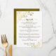 Dieses schöne Hochzeitsmenü ist einfach, elegant, raffiniert und stilvoll. Es zeichnet sich durch ein wunderschönes Design aus, mit einer laksigen Goldskriptkalligraphie und zarten goldenen Gardinen und Wirbel in den Ecken. Die Rückseite ist eine schöne goldfarbene Marmorfarbe.