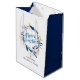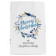 Diese elegante Weihnachtsgeschenktasche ist mit einem Kranz mit goldenen Rentieren und blauen und grauen Pflanzen ausgestattet. Frohe Weihnachten ist in einem schönen handgeschriebenen Skript geschrieben.