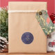 Verleihen Sie Ihren Weihnachtsgeschenken aus selbstgemachtem Heißen Schokoladen-Mix Eleganz und Stil. Diese personalisierten Aufkleber zeigen Ihren Namen und den Titel Ihres Rezepts in goldener Typografie auf einem blauen Lederdruckhintergrund. Ein Ring aus goldenen Zweigen und Blättern bringt eine einfache festliche botanische Note für die Feiertage.