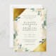 Elegante geometrische Blumen-Hochzeitseinladung mit Ihren Namen und Hochzeitsdetails gerahmt von Imitaten Goldfolie Akzenten, Creme und Elfenbein Aquarellfarben Blume, und üppige grüne Blätter vor einem weichen beigen Hintergrund. Eine stilvolle Wahl, ideal für Hochzeiten im Frühjahr oder Sommer.