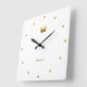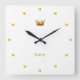 Elegante Goldene Krone & Goldene Punkte auf Weiß Quadratische Wanduhr