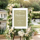 Einfache, elegante Gold-Ornament Begrüßungsfolien gedruckt. Einfaches Design mit angesagter weißer Schrift und elegantem Ornament in Goldfolie. Elegantes Begrüßungszeichen. Personalisieren Sie alle Texte, Brautnamen und Bräutigam Namen und das Hochzeitdatum.