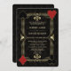Glamour Casino Royale und Art Déco 20er Jahre Design-Karte. Es zeigt den Vintagen Art Deko Stil, ein Roaring 1920er Jahre alten Hollywood Imitats Goldrahmen, spielen Karten Anzüge (Simulation Spielkarten), auf goldschwarzen Art Deco Muster Hintergrund. Spezielle Formulierungen werden wie im Poker-Spiel verwendet. Auf der Rückseite Imitate Gold Art Deco Muster, QR Code und Initialen zwischen Spielkarten Anzug. Verwenden Sie das Tool Personalisieren, um Ihre Informationen hinzuzufügen. Für mehr, besuchen Sie bitte meine Glam Roaring 20's Wedding Collection.