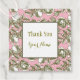 Ein elegantes und individuelles Dankeschön bevorzugen quadratisches Geschenkschild mit Schrift- und Blockbriefen in Imitaten Golden und elegante Vintage Rose-Schnitte in Weiß und Imitat Golds auf Blassrosa.