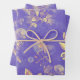 Elegante Goldene Rose über Lila Hintergrund Geschenkpapier Set