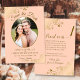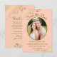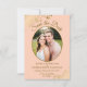Diese wunderschönen Karten sind ein guter Weg, um Ihre Freunde und Familie wissen, Save the Date für Ihre kommende Hochzeit lassen. Sie zeichnen sich durch ein helles, orangefarbenes oder pfirsichfarbenes und goldfarbenes Design aus. Ihr Foto ist in einem ovalen Rahmen, umgeben von goldenen Imitaten und Wirbel, gehalten. Es gibt extravagante Schriftzeichen mit Platz für Ihre Namen, Hochzeitstag und Ort. Die Rückseite hat eine niedliche "Bleistift uns in" Grafik mit Platz für eine Notiz, die eine Website, wo Ihre Gäste gehen können, um mehr Informationen.