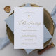 Dieses elegante Design besticht durch Imitate mit goldfarbener Kalligrafie und einen einfachen, modernen Text auf weißem Hintergrund. Ein passendes Imitat Goldkreuz macht es zu einem idealen Ort für Ihre Feier. Ein stilvoller, geschlechtsneutraler Stil, der perfekt für ein Mädchen oder einen Jungen ist.