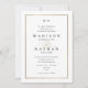 Diese elegante Gold Rahmen Schwarz und Weiß Einladung Hochzeit ist einfach und vielseitig. Das Design ist schick, weiß und schwarz, mit einem Monogramm, Skriptdetails, einem einfachen Goldrahmen und formalem bearbeitbarem Text. Klicken Sie auf die Schaltfläche Bearbeiten, um dieses Design anzupassen.