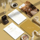 Klassische "Save-the-Date"-Karte mit elegantem weißen und goldenen Taubendesign. Eine schön gefaltete Karte, um Ihren Hochzeitstermin in einem zeitlosen und raffinierten Stil anzukündigen. Flach gedruckt - ohne Prägung oder erhabene Textur. Vollständig anpassbar mit Ihren Veranstaltungsdetails.