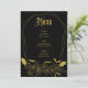 Genießen Sie den Zauber dieses gotischen Hochzeitsmenüs, das perfekt für eine Halloween-Hochzeit geeignet ist. Dieses moderne, elegante Design verbindet eine boho-dunkle Ästhetik mit einer launenhaften, spoky Atmosphäre, die das Wesen einer Oktoberfeier abbildet. Dieses Hochzeitsmenü mit Fledermaus- und Spinnennetzmotiven und zarten Blumenelementen zeigt eine beeindruckende Farbpalette in Schwarz und Gold. Set Sie den Ton für Ihren besonderen Tag mit einer einzigartigen Mischung aus gespenstischer Schönheit und zeitloser Eleganz.