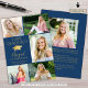 Mit dieser eleganten, blau-goldenen (oder anderen Hintergrundfarben) Ankündigung Ihres Absolventen der Highschool oder der Uni mit 6 Fotos (5 vorne und 1 hinten), einem eleganten Imitat mit Metallsilber-Graduierenkappe oder -plakat, dem Titel JEAR GRADUATE mit dem Namen Ihres Absolventen in einem trendigen handgeschriebenen Drehbuch und Schulnamen. Der Rücken ist so konzipiert, dass er nach Wunsch Informationen über Ihre Absolventen, Aktivitäten und Zukunftspläne enthält. HILFE: Für Hilfe bei der Modifikation/Personalisierung des Designs, bei Farbänderungen, bei der Übertragung des Designs auf ein anderes Produkt oder wenn Sie die Dinge koordinieren möchten, wenden Sie sich bitte an den Designer, BEVOR Sie über Zazzle Chat oder makeitaboutyoustore@gmail.com bestellen.