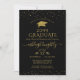 Elegante Graduate Gold Glitzer Confetti Cap Black Einladung