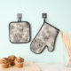 Elegante, grau-weiße Hochzeit Ofenhandschuh & Topflappen-Set