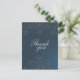 Dieses stilvolle Wedding Dankeschön-Postcard hat einen dunkelgrauen marineblau-blauen Hintergrund mit einem hellgrauen und weißen Blumenmuster Wirbel oben und unten. Im Hintergrund befindet sich ein verblasstes, florales, wirbelförmiges Design. In der Mitte ist Dankeschön geschrieben. Auf der Rückseite können Sie den Gruß personalisieren. Diese klassische Farbkombination ist ideal für jede Jahreszeit!