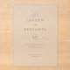 Diese Hochzeitseinladung zeigt ein minimalistisches und elegantes Design mit einem sauberen, hellen Hintergrund, der Einfachheit und Raffinesse betont. Das Layout ist vertikal ausgerichtet und nutzt ausreichend negative Fläche, um die Textelemente hervorzuheben, die in einer ausgewogenen Komposition angeordnet sind. Sanfte Grau- und Weißtöne dominieren die Farbpalette und schaffen eine zurückhaltende, aber raffinierte Ästhetik. Die Typografie umfasst fette Serif-Schriftarten für Namen und Daten, ergänzt durch zarte Schriften für das Wort "und", was den formalen Ton unterstreicht. Perfekt für Paare, die einen klassischen und zeitlosen Look suchen, vermittelt diese Einladung Formalität und Raffinesse, ideal für eine anspruchsvolle Hochzeitsfeier.