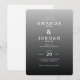 Diese elegante Hochzeitseinladung verfügt über ein minimalistisches Design mit einem Farbverlaufshintergrund, der von hellgrau zu dunkelgrau übergeht und ein anspruchsvolles und modernes Aussehen schafft. Die saubere Serifentypografie ist für eine ausgewogene Komposition zentriert und verbessert die Lesbarkeit und Formalität. Mit ihrer dezenten Graustufenpalette und dem knackigen Digitaldruck vermittelt die Einladung eine Atmosphäre der Verfeinerung, perfekt für Paare, die eine zeitlose und klassische Ästhetik für ihren besonderen Tag suchen.