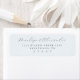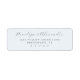 Diese Rücksende-Adressetiketten weisen ein sauberes, elegantes Design mit zentrierten Textelementen auf weißem Hintergrund auf. Das Layout enthält eine fließende Kursivschrift für Namen und eine formelle Serifenschrift für Adresse und Postleitzahl, wodurch ein anspruchsvolles Aussehen entsteht. Mit einer monochromen dunkelgrauen Farbpalette strahlt das Design Einfachheit und zurückhaltende Luxus aus, was es ideal für formelle Anlässe macht. Der großzügige Zeilenabstand verbessert die Lesbarkeit und sorgt gleichzeitig für eine ausgewogene Gesamtkomposition.