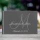 Elegante graue Monogramm-Namen Datum Foto Hochzeit Gästebuch