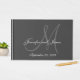 Minimal Schönes personalisiertes Gästebuch für Hochzeiten. Elke Clarke © Elegant Gray Monogram Names Date Wedding Guest Book mit Ihrem Verlobung Foto auf der Rückseite. Die Farben Karkohle grau und weiß können individuell angepasst werden.
