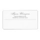 Moderne Versandetiketten mit einem einfachen Design mit Ihrem Firmennamen in einem eleganten, grau-dünnen Skript-Schriftart und zwei Textzeilen für Ihre Rücksendeadresse in einem serifenlosen Schriftart, auf einem weißen Hintergrund. Eine dünne Linie teilt den Bereich unten, wo Sie die Adresse Ihres Kunden handschreiben können. Diese minimalistischen Versandaufkleber sind ein guter Weg, um eine berufliche Touch zu Ihren Paketen hinzuzufügen.