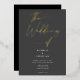Elegante, graue schwarze Gold-Kalligrafie-Script-H Folieneinladung