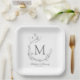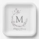 Elegante silbergraue, weiße, botanische Kreide Hochzeitspapier Teller. Genießen Sie Ihren besonderen Tag mit personalisierten Servietten mit Monogramm, Namen und Daten gegen einen von Hand gezeichneten Blumenkranz. Wenn Sie Hilfe beim Design oder den passenden Artikeln benötigen, kontaktieren Sie uns bitte unter cedarandstring@gmail.com
