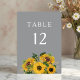 Elegante Gray Sunflowers Hochzeit Tischnummer