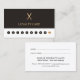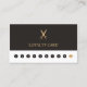 Einfache und moderne Treuekarte für den Schönheitssalon. Elegantes Design mit dunkelgrauem und weißem Hintergrund und einem goldenen Schere-Imitat. Perfektes Marketing Tool, um Ihre besten Kunden zu belohnen.