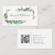 Elegante Green Floral QR Code Business Card Visitenkarte