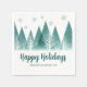 Eine elegante Reihe von Tannenbäumen und Schneeflocken über Ihrem personalisierten Happy Holidays Drehbuch und Ihrem Firmennamen in schönem aquamarinem Grün unter dem schneebedeckten Wald. Modernes Corporate-Urlaubsparty-Dekor mit Ihrer individuellen Botschaft auf schönen, festlichen Papierservietten.