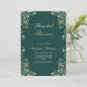 Ein elegantes Brautparty in smaragdgrün und gold. Dekorative Wirbel, Blume und Rollen in einer Goldfolie von Imitaten umgeben die Kanten. Übereinstimmen von Goldtext in einem Skript-Schriftart. Der gesamte Text und die Hintergrundfarbe können auf den Anzug Ihrer Einstellungen geändert werden. Die Rückseite weist auch in Imitaten eine ergänzende Dekorationsweise auf. Eine stilvolle Einladung für ein Brautparty. Das Hotel ist Teil einer grünen und goldenen Hochzeitssuite mit dem gleichen Design. Wenn Sie dies auf einem anderen Produkt wünschen oder Hilfe benötigen, um dies anzupassen, kontaktieren Sie mich.