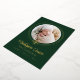Mit unserem eleganten Foto Birth Announcement Green and Gold Foil können Sie Ihre kleine Ankunft atemberaubend feiern. Das Foto des Babys ist schön umrahmt von einem goldenen Folienband, das in einem Bogen auf einem Kieferngrün befestigt ist. Der Vor- und Vorname Ihres Babys erscheint in eleganter Kalligrafie, mit dem Nachnamen und den Geburtsdaten unten. Die Rückseite der Ankündigung bietet Platz für ein zusätzliches Foto und eine persönliche Nachricht. Dieser luxuriöse, individuell gestaltbare Sake ist perfekt, um Ihre Freude mit Familie und Freunden zu teilen!