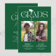 Feiern Sie Ihre Absolventen in zeitlosem, raffiniertem Stil mit dieser eleganten grün-weißen gemeinsamen Abschlussfeier-Einladung. Vor einem stilvollen grünen Hintergrund schafft die moderne weiße Serifenschrift "GRAD" einen verfeinerten Mittelpunkt, komplett mit einem stilvollen Abschlussmützen-Symbol über dem "R". Der fließende Schwung des "R" verwandelt sich in eine elegante Quaste und sorgt für eine kohärente, luxuriös inspirierte Gestaltung.