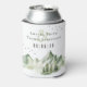 Aquarellmalerei von Bäumen, fliegenden Vögeln und Bergen im Hintergrund. Stille und ruhige Natur-Illustration mit Kiefern und Silhouetten fliegender Vögel. Fügen Sie Namen von Braut und Bräutigam und das Hochzeitdatum auf diese Personalisierungen kann kühler sein.