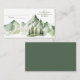 Aquarellmalerei von Bäumen, fliegenden Vögeln und Bergen im Hintergrund. Stille und ruhige Natur-Illustration mit Kiefern und Silhouetten fliegender Vögel. Eine Zeile für den Gastnamen und eine Zeile für die Tischnummer.