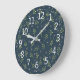 Elegante grüne Blätter Pink Floral Ditsy Muster | Große Wanduhr