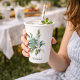 Dieser individuell gestaltbare Papierbecher zeichnet sich durch ein reizvolles Aquarelldesign aus. Ein zarter Stamm mit mehreren Zweigen und weichen, grünen Blätter wird dreimal um die Tasse herum wiederholt. Die Blätter werden in einem Aquarellstil mit subtilen Farbvariationen gerendert, von einem hellen, luftigen Grün bis hin zu einem tiefer sitzenden Schatten, der ein natürliches und künstlerisches Aussehen schafft. Der Hintergrund ist ein weiches, neutrales Grau, das es den grünen Blätter ermöglicht, sich wunderschön auszuzeichnen. Unter jedem Blatt-Cluster gibt es einen Platz für anpassbaren Text, der hier in einem fließenden Skript-Schriftart angezeigt wird. Damit ist der Becher perfekt für jede Veranstaltung, von einer Hochzeitsfeier mit "Vanessa & Michael Est. 2025" zu einer Babydusche mit "It's a Boy! Masons Babydusche." Man könnte es auch für "Isabellas Brautparty 2025", "Happy Birthday, Sarah!" oder sogar eine "Miller Family Wiedersehen" verwenden.