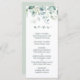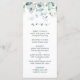 Dieses Hochzeitsmenü umfasst einen bemalten Aquarelleukalyptus, botanisches Grün und hellblaue Blätter mit moderner Kalligraphie.