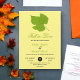 Diese elegante Hochzeit im Herbst lädt zu einer modernen Herbsthochzeit ein. Das schlichte Design zeichnet sich durch grüne Herbstlaube mit eleganter schwarz-grüner Typografie auf hellgelbem Hintergrund aus.