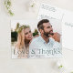 Elegante Hochzeitskarten mit dem vollblühenden Foto "Liebe und Dank" in grüner Schrift. Personalisieren Sie dieses moderne Foto dank Postkarten mit Ihrem Namen für eine stilvolle und herzliche Touch. Die Rückseite des Fotos Hochzeit danken Ihnen Postcard beinhaltet Platz für Ihre Rücksendeadresse und eine persönliche Nachricht, sodass es leicht, Ihre Dankbarkeit an die Gäste ausdrücken. Ideal, um Ihr Lieblings-Hochzeitsfest Foto zu zeigen, während Sprichwort danke.
