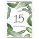 Elegante grüne tropische Pflanzen. Naturhochzeit Tischnummer