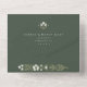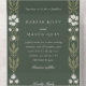 Diese ganzheitliche Hochzeitseinladung mit einer bequemen, wegreißenden RSVP-Karte verkörpert Eleganz und Eleganz und zeichne Inspiration aus der Jugendstil-Zeit. Es ist sorgfältig mit einem üppigen grünen Hintergrund gestaltet, mit zarten, weißen Blumenmotiven und salzgrünen Akzenten geschmückt und symbolisiert das Wachstum und die Vitalität der Gewerkschaft. Auf der Vorderseite der Einladung werden die Details des besonderen Tages in einer eleganten Schrift präsentiert, umgeben von der Schönheit der Natur inspirierten Elemente. Die abnehmbare RSVP-Karte bewahrt das zusammenhängende Design und bietet eine einfache und stilvolle Möglichkeit, auf die Gäste zu antworten. Die abgerundeten Ecken fügen dem Vintag inspirierten Thema eine moderne Touch hinzu. Diese Einladungs-Suite ist ideal für Paare, die eine Mischung aus Komfort, klassischem Design und der natürlichen Eleganz eines bezaubernden Gartens suchen.