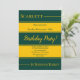 Dieses elegante Grün und Gold zum Geburtstag laden Sie zu einem modernen Geburtstag ein. Das einfache Design zeichnet sich durch schlichte grüne und goldene Kalligraphie auf einem Hintergrund aus grünen und goldenen Streifen aus.