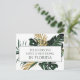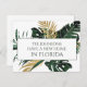 Ein Strauß tropischer Blätter aus Grün und Gold erzählt die Geschichte, noch bevor Ihre Empfänger den Text vor Ihrer neuen Adressenankündigung Postcard lesen: Sie haben eine neue Zuhause in Florida. Wir haben einen eleganten Serif-Schriftart verwendet, um die üppige Grandeur der Blumen vor der Karte zu erreichen, und das Thema auch auf die Rückseite getragen. Der gesamte Text auf der Vorder- und Rückseite dieser Karte kann einfach mit Ihren eigenen Daten angepasst werden, indem der Beispieltext auf der Personalisierungsvorlage ersetzt wird. Ein Teil unserer Florida Adresswechsel-Sammlung, eine 5 x 7 Flachkarte mit Umschlag, sowie ein koordinierendes Rücksendeetikett sind ebenfalls in diesem Design erhältlich.