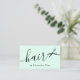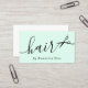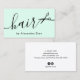 Das moderne Design der Visitenkarte mit schwarzer Schere, grünem Minzboden und elegantem Kalligraphie-Schriftart.