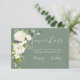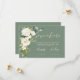 Dies ist eine einfache, aber elegante Blumenhochzeit Speichern Sie die Date-Karte auf einem olivgrünen Hintergrund mit weißen Aquarellfarben Blume umgeben von Grüntönen. Absolut wunderschön. Ideal für eine Herbst- und Winterhochzeit. Kann leicht mit Orangen, Pfirsichen, Pinks, Bordeaux und anderen tiefen Farben gemischt werden, um Ihr Thema zu vervollständigen.