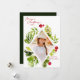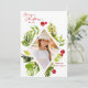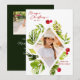Diese elegante Urlaubskarte besticht durch ein atemberaubendes, rautenförmiges Foto, umgeben von lebhaften Aquarellbildern und botanischen Illustrationen üppiger Vegetation und festlich-roter Beeren. Set vor einem tiefen, waldgrünen Hintergrund, das Design strahlt einen modernen und raffinierten Charme aus.