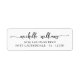 Elegante, moderne Rücksendeadressen-Aufkleber mit Schwarz-Weiß-Schrift. Mit einer hübschen, handgeschriebenen Skriptnamensvorlage mit kursivem Swash Schwanz Schriftart. Einfach mit Ihrem Namen und Ihrer Rücksendeadresse zu personalisieren.
