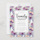 Elegante Blumenschrift Wiedersehen Einladung - Schöne handgeschriebene Schrift und handgeschriebene Schrift, umgeben von einem Garten mit üppig blütigen Rosa, Magenta und lila Blumen. Die Rückseite der Einladung wird in dunkel lila angezeigt, aber im Designwerkzeug kannst du sie ganz nach Belieben ändern.